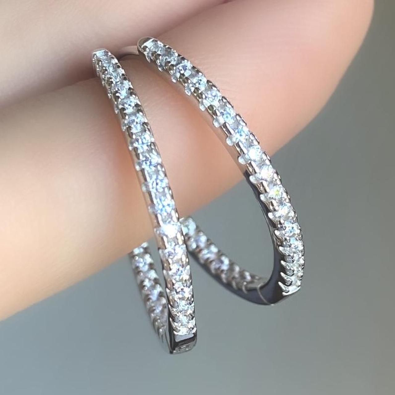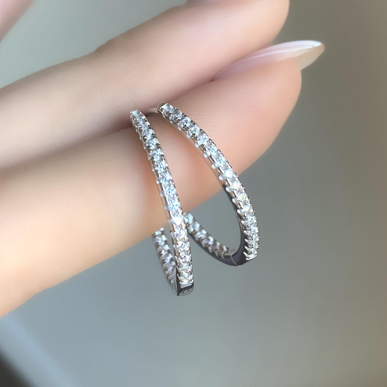 These elegant hoop earrings are crafted from 925 sterling silver with a premium rhodium-plated finish. Featuring pavé-set cubic zirconia stones along the edge, they offer subtle sparkle and versatile style. Each hoop measures approximately 25 mm in diameter with a slim 2 mm profile, ideal for everyday chic.