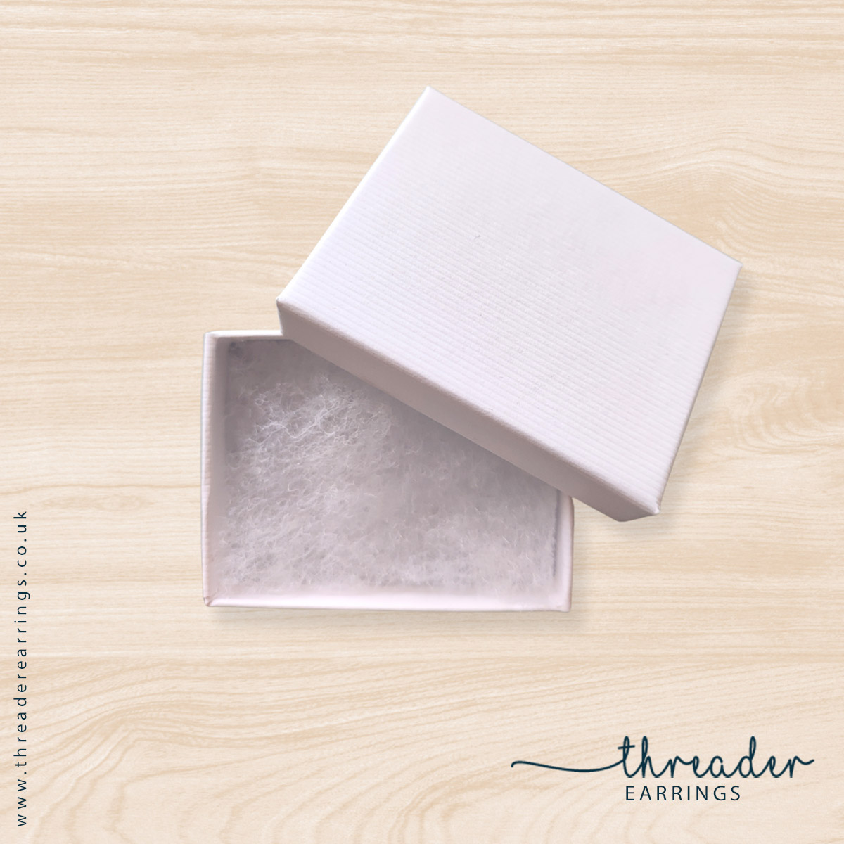 These little gift boxes can be used for a wide range of jewellery. They have an attractive white ribbed finish on the outside. Our small packets fit just fine inside.