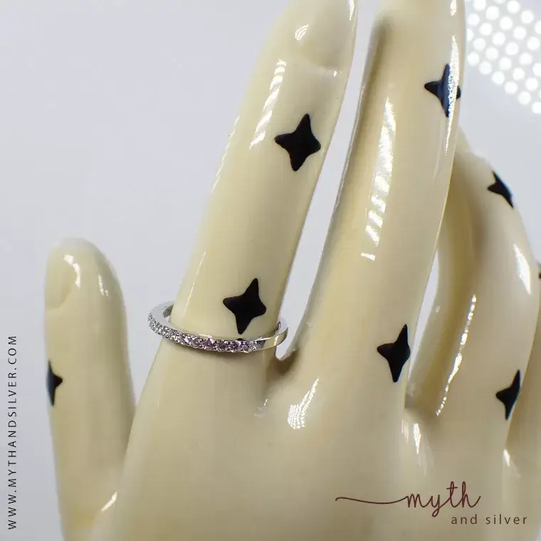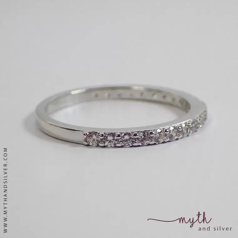 A pretty, eye-catching ring weighing 1.2Gr. approx, featuring a 2mm band in 925 Sterling Silver set with sparkling Cubic Zirconia stones.