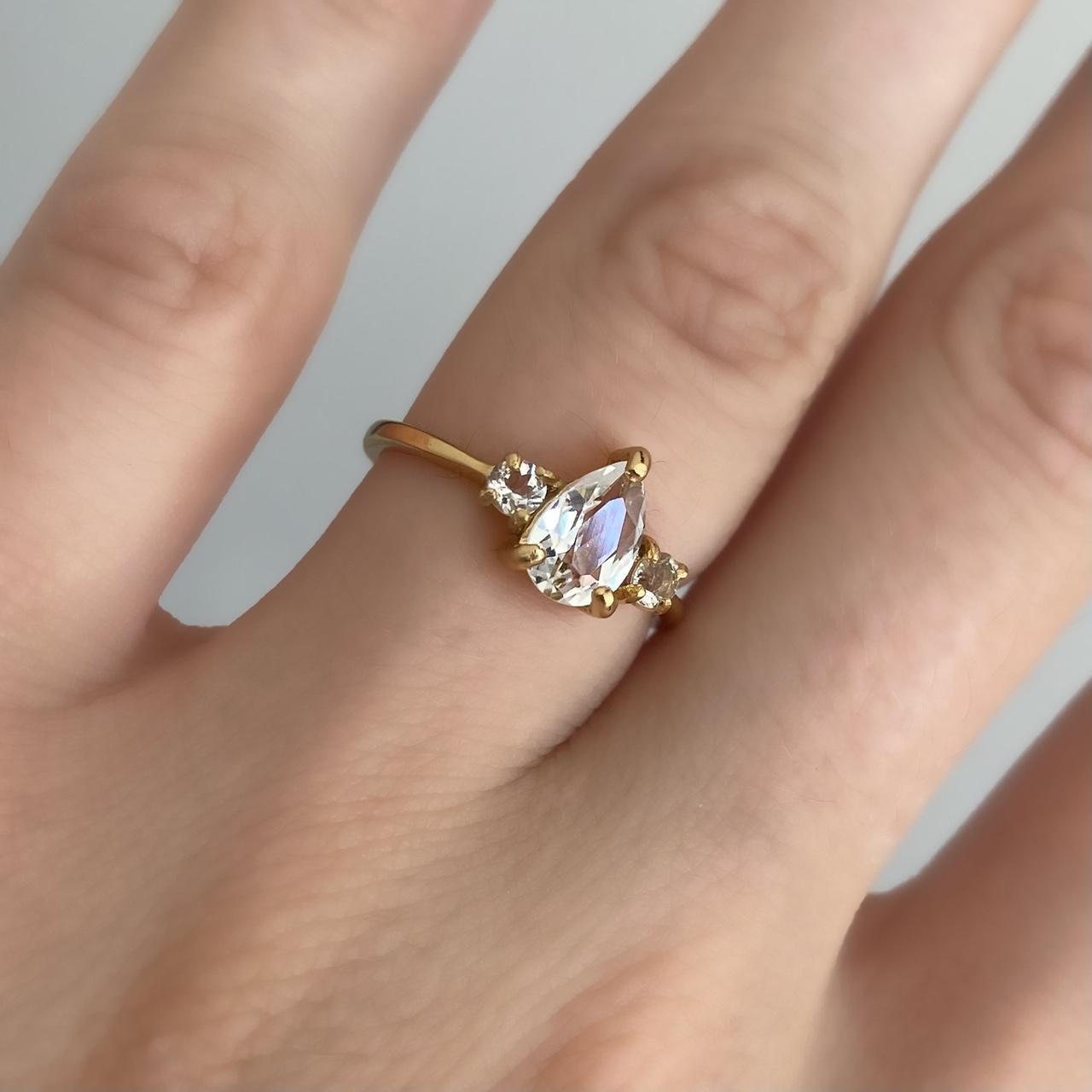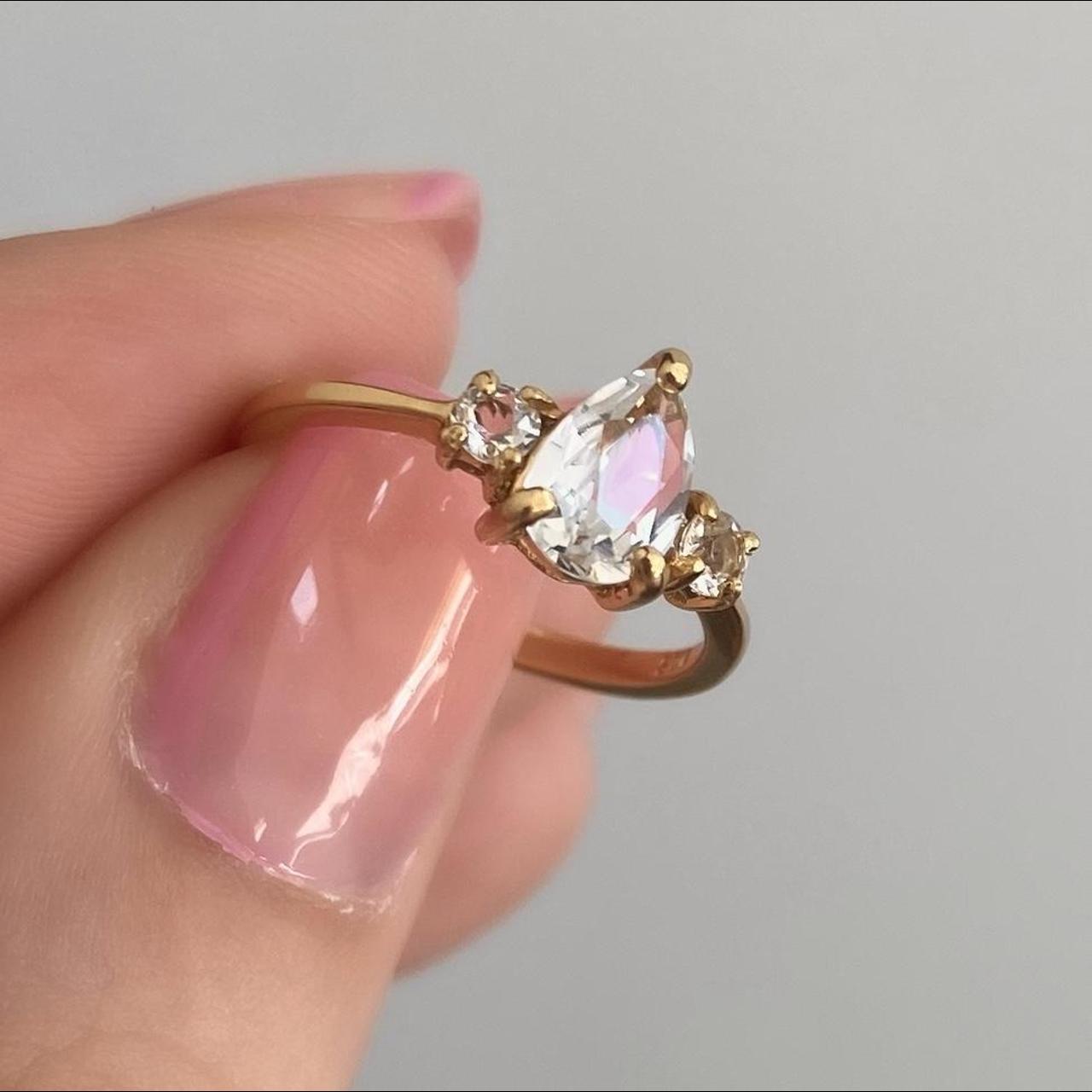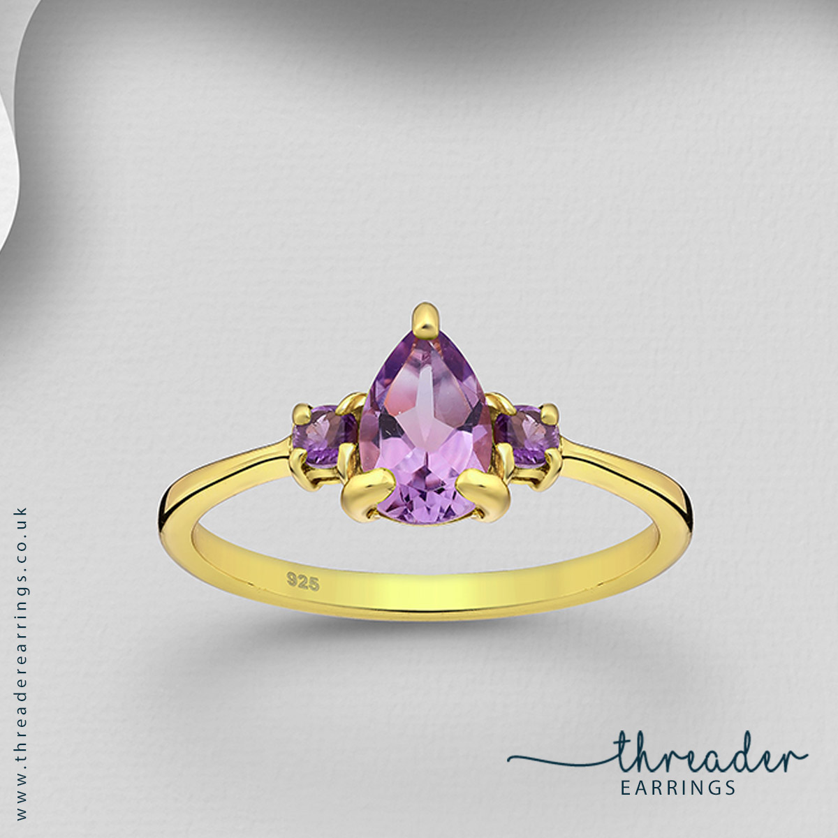 Beautiful pear-shaped stone ring, Amethyst or White Topaz, 18 carat gold plated Sterling Silver