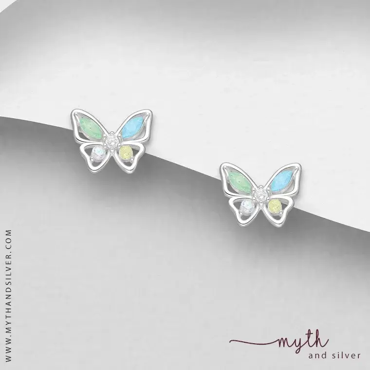 Step into the enchanting world of our 925 Sterling Silver Butterfly Stud Earrings, a charming highlight of our CZ Collection. These earrings capture the essence of delicate beauty, featuring butterflies whose wings are adorned with Cubic zirconia stones. What sets these apart is the soft pastel colours of the CZ stones on each wing, giving off an opalescent sheen that is both unusual and captivating.