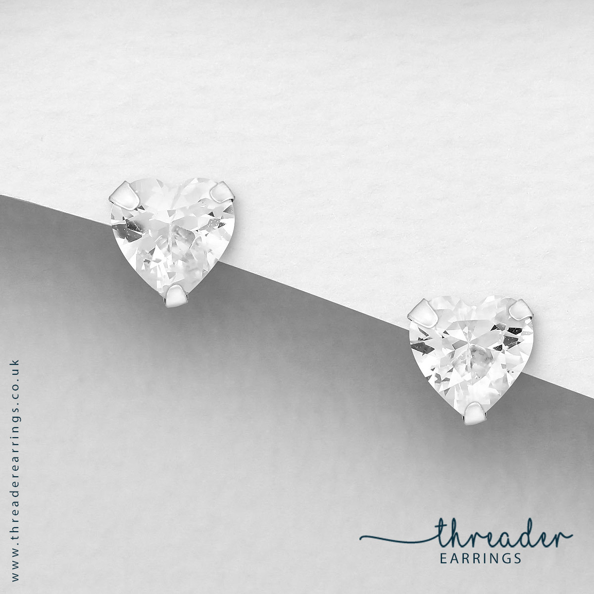 925 Sterling Silver Clear CZ Heart Threader Earrings