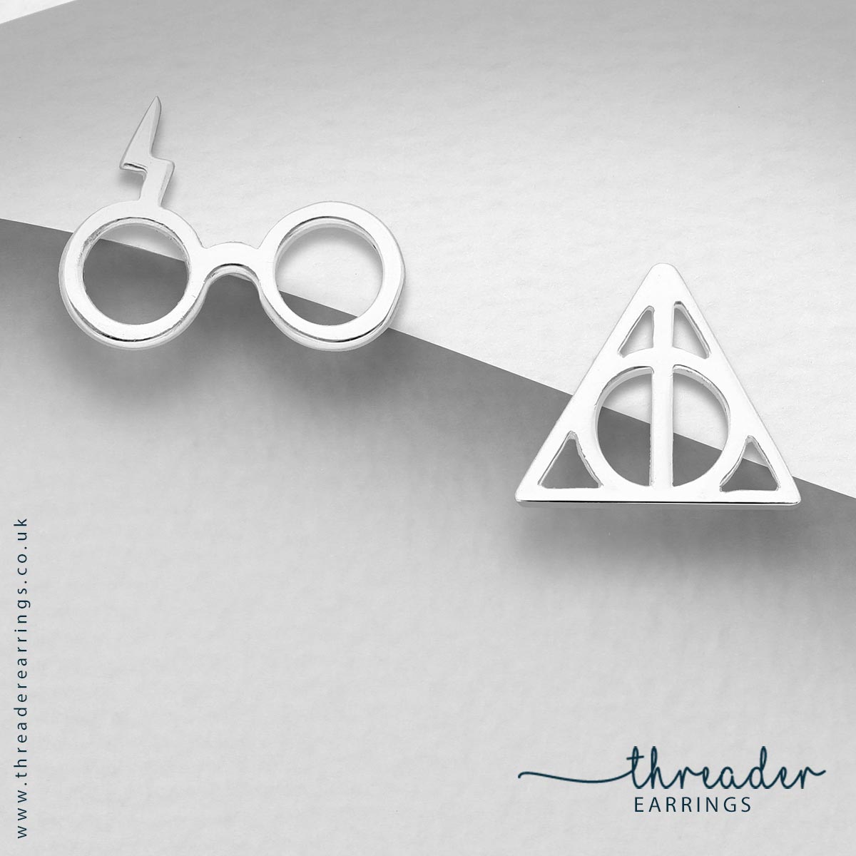 925 Sterling Silver quirky glasses + geo mismatch stud earrings