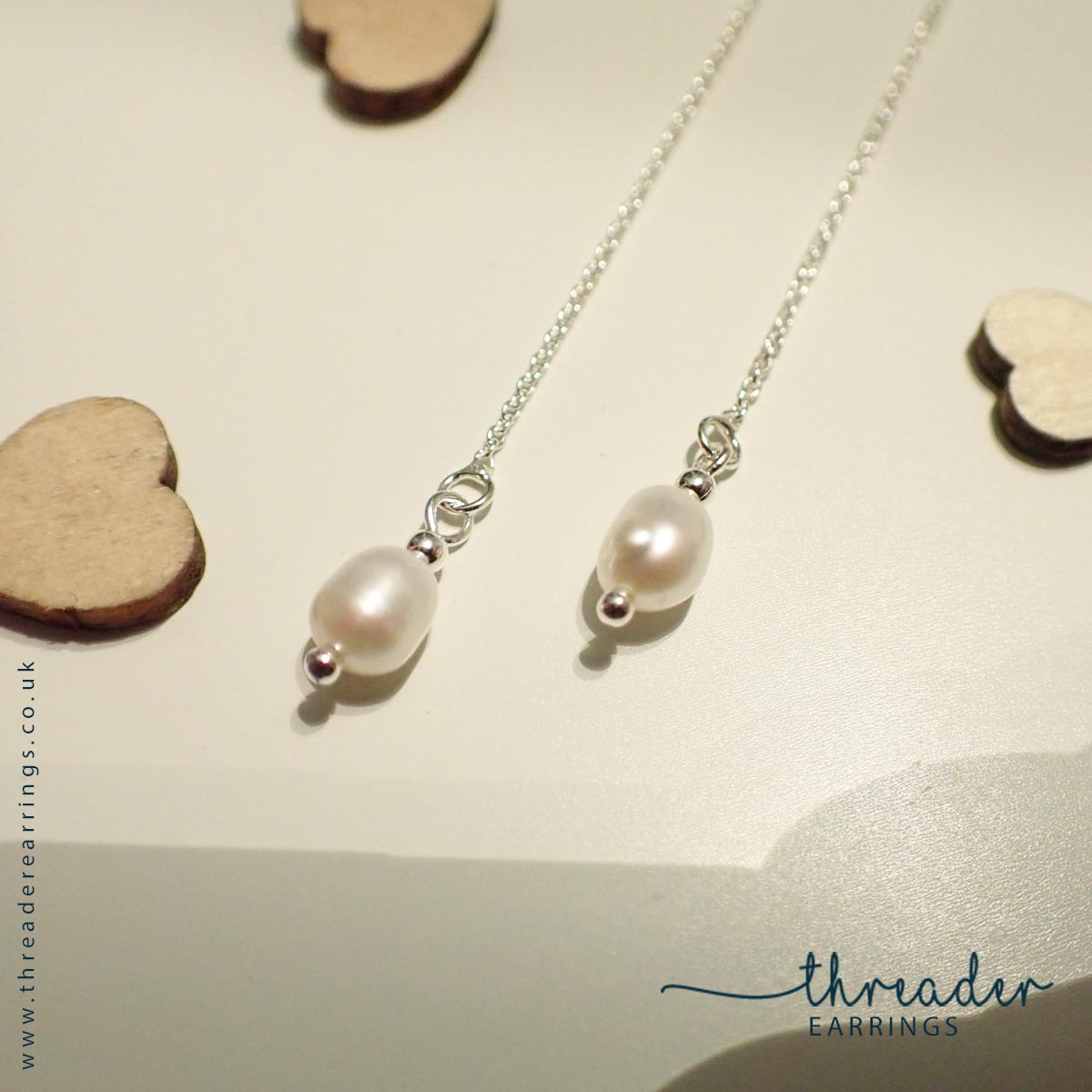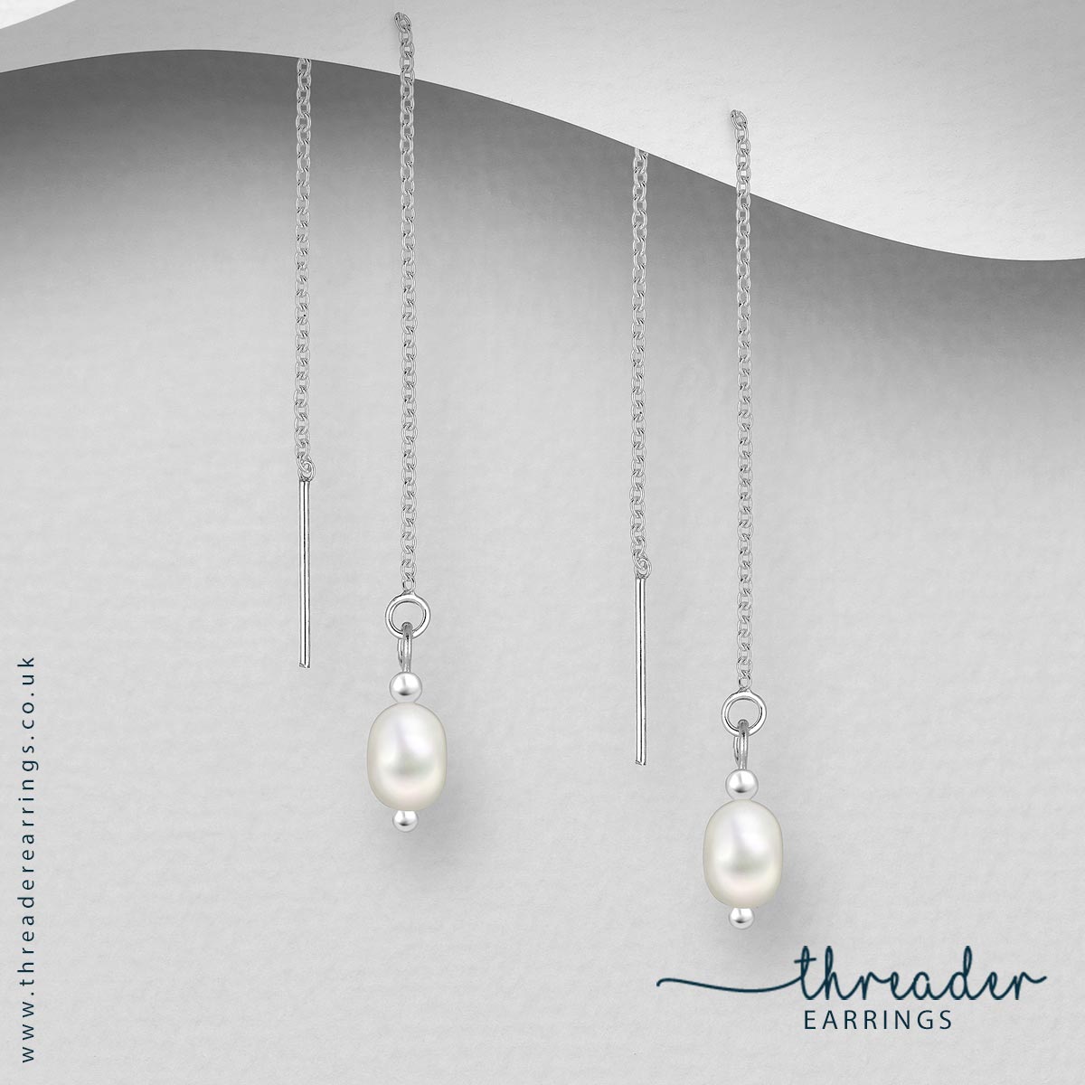 These pretty threader earrings feature freshwater pearls, flanked either side by tiny silver beads.